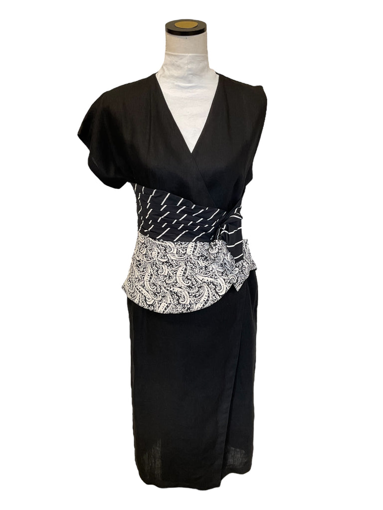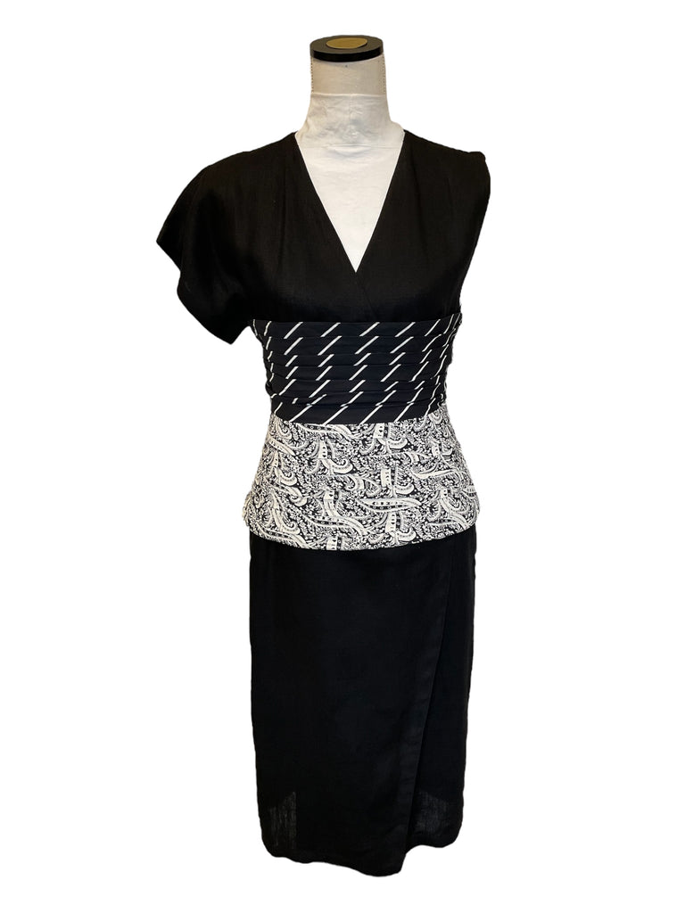 Gianni Versace Black Linen Cocktail Dress with Draped Sash Detail – 1980s Vintage Collectible