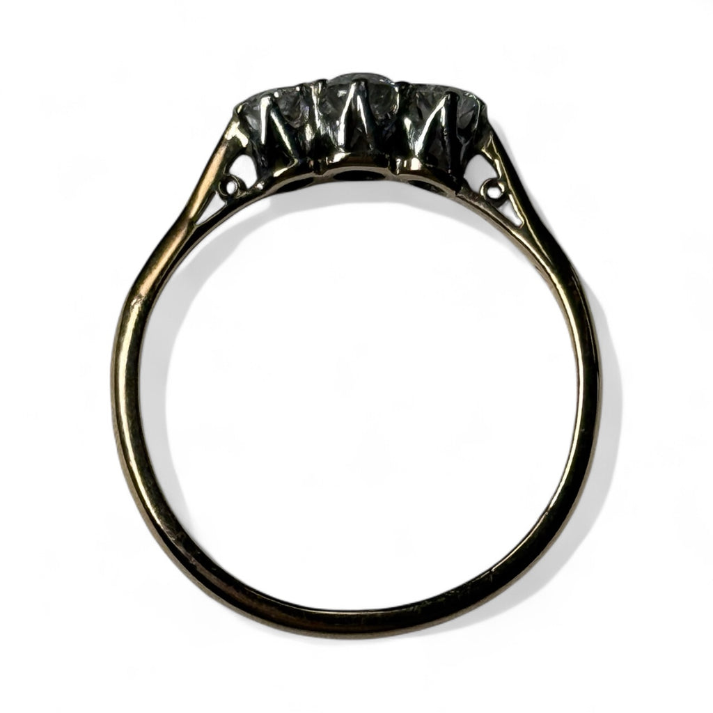 An elegant 18K yellow gold trilogy diamond ring set with approximately 0.25ct of graduated natural diamonds. A classic vintage diamond ring design symbolising past, present, and future — perfect as a vintage engagement ring, anniversary gift, or timeless heirloom piece.