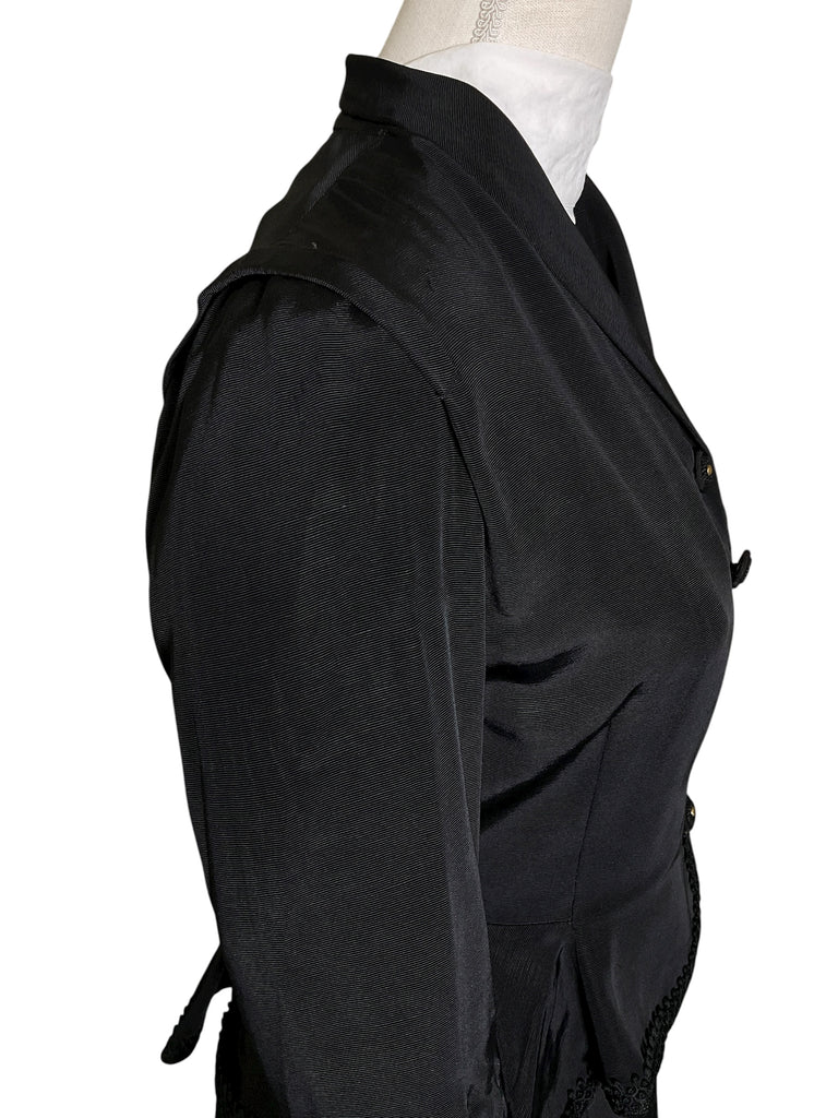 Original 1940s Black Grosgrain Skirt Suit – Bespoke Tailoring in Dior New Look Silhouette (UK 6–8)