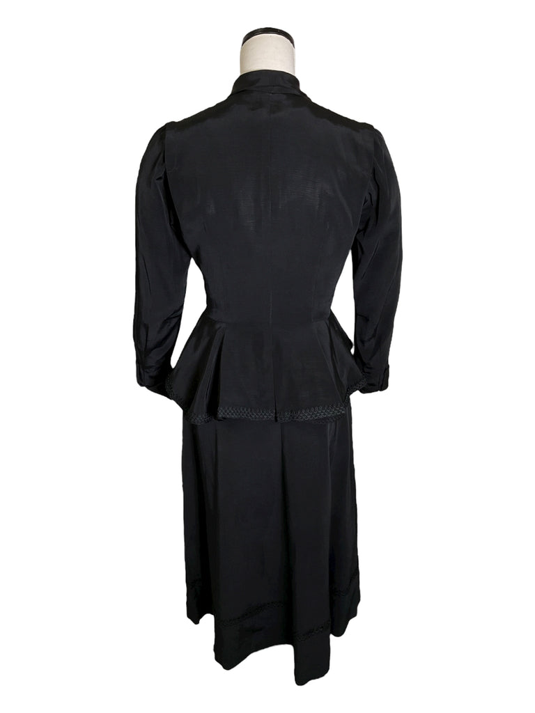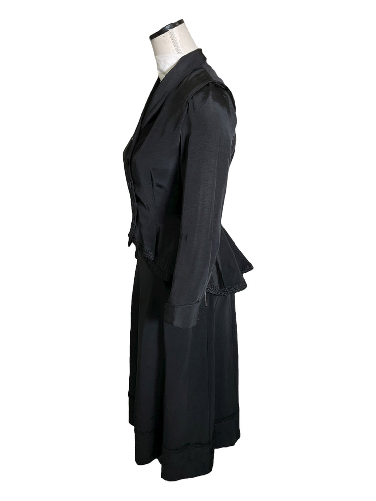 Late 1940s Bespoke Black Grosgrain Skirt Suit – New Look Silhouette
