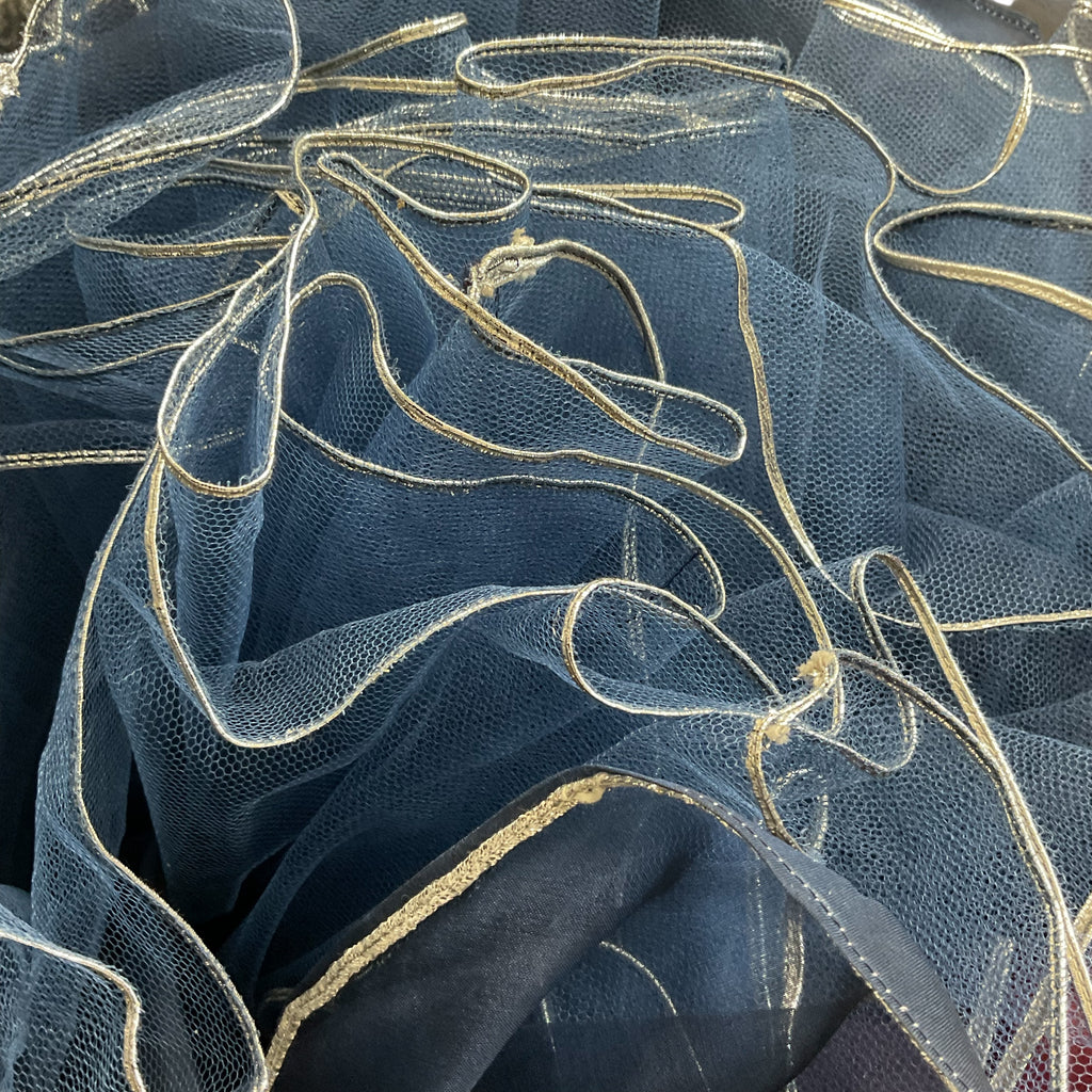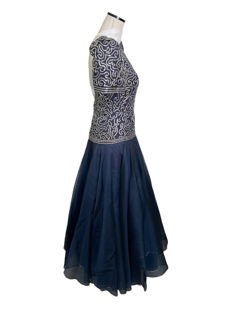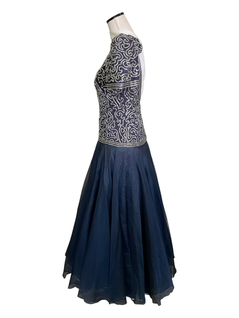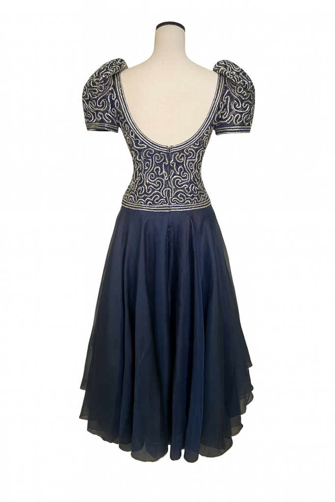 1980s Murray Arbeid Navy Blue Couture Evening Gown – Silver Beaded Bodice & Voile Underskirt | by Princess Diana’s Designer