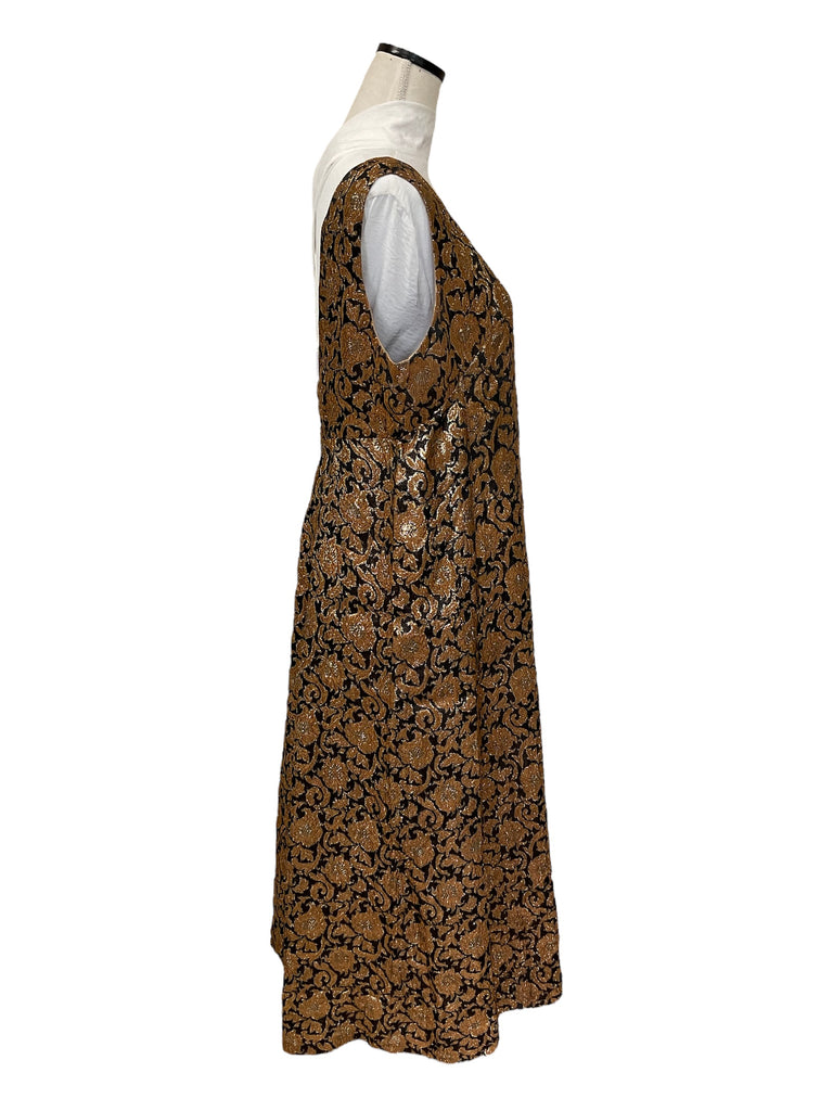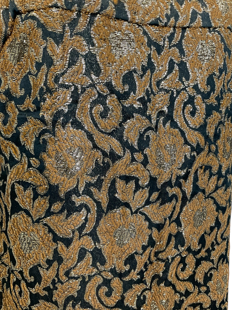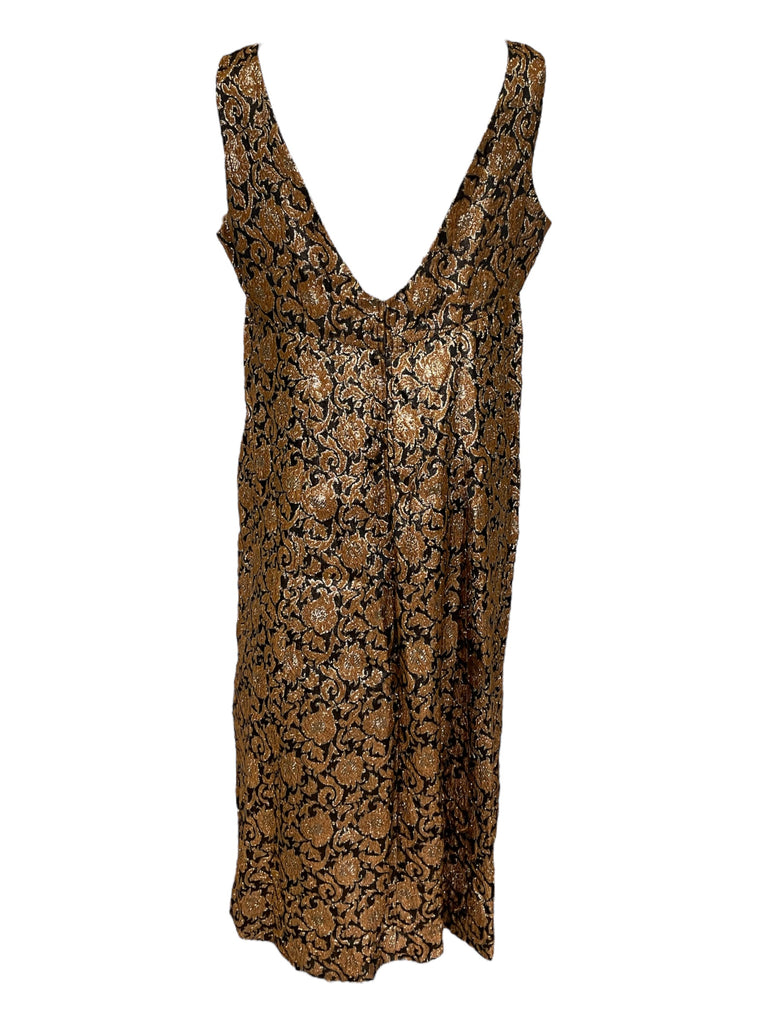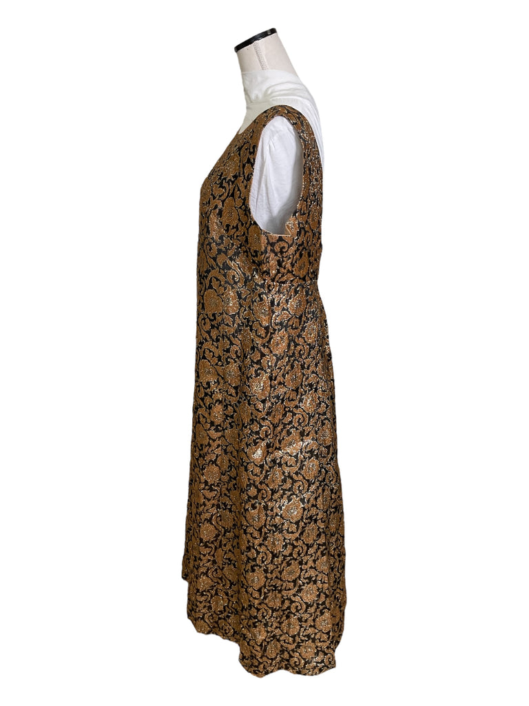 Vintage 1960s Bespoke Gold and Black Brocade Evening Dress with Low Back